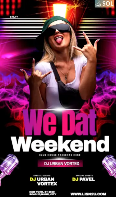 Get ready to illuminate your nights with the Club SOL Weekend of the Starboy MegaMix, a stellar musical experience designed to transcend the ordinary. DJ Urban Vortex takes center stage, channeling the electrifying essence of "Starboy" into a high-octane MegaMix that promises to dominate the dance floor.